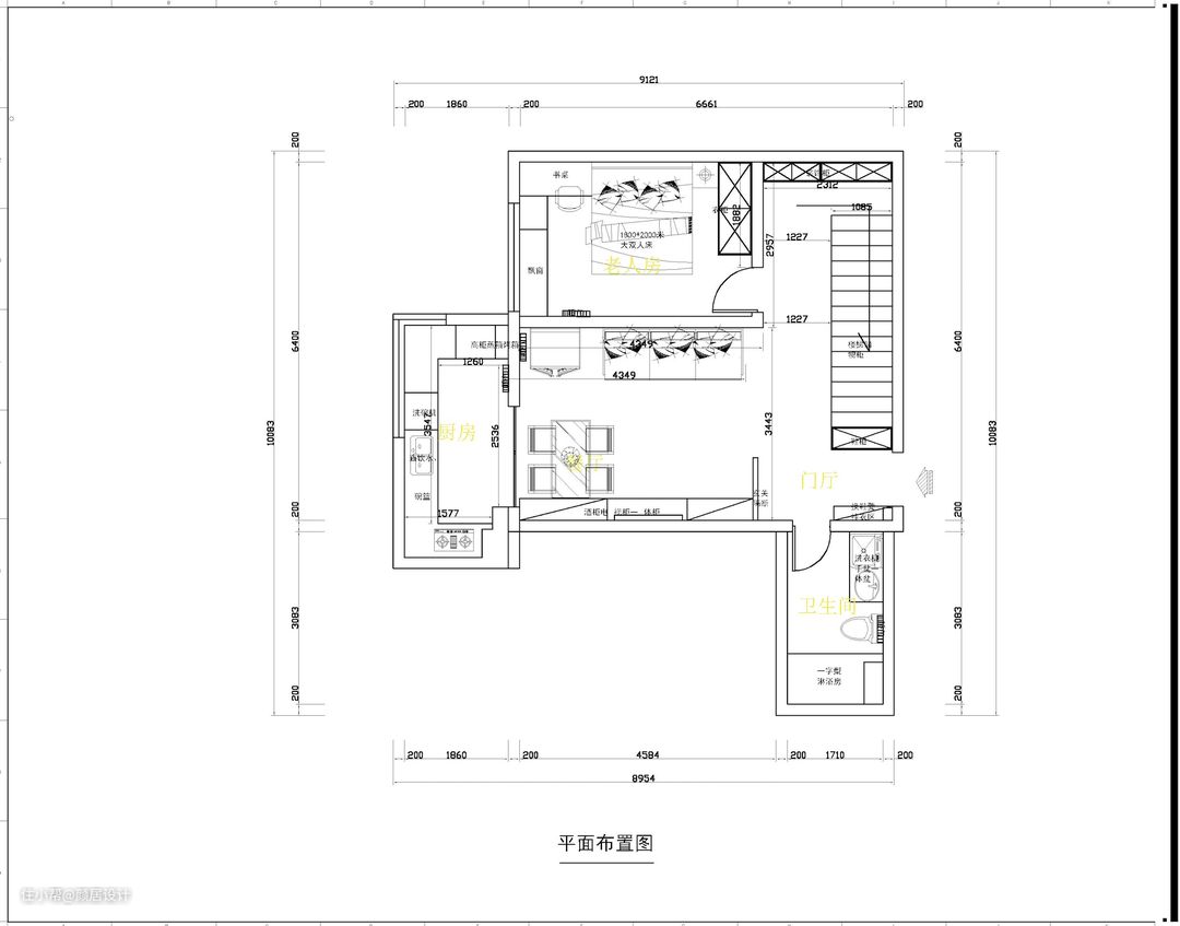 ▲二楼平面布置图 房子原来是作为一个办公空间在使用,整个空间没有功能区域的划分,除了厨房、卫生间,其余空间都是敞开的大开间。 此案是一个复式户型,有三世同堂的五口人居住,一对知书达理的夫妇和一个8岁的可爱女儿,还有温文尔雅的两位老人。设计师通过多次沟通了解到,业主既希望三代人同居一室,相互照应,又担心同在一个屋檐下,相互打扰,尤其老人和孩子,老人喜欢安静的读读书,而孩子天生活泼好动。 房子分上下两层,总共180㎡,房子原来是作为办公空间在使用,每层都是一个开阔的空间,没有任何功能区域的划分,且一层是开门见厅型,视线从入户门穿过客餐厅,直接能看到厨房全貌。因为有五口人居住,收纳空间的规划,对设计师是一个不小的挑战。