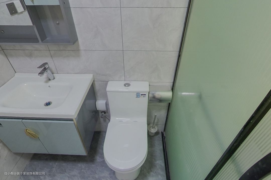 这个卫生间也是同样做了干湿分离,主卫就给它做了一个马桶的设计啦!