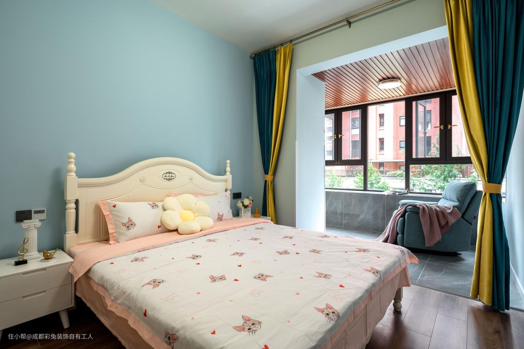 这是张老师夫妻俩为远在上海的女儿布置的房间:将卧室中间的两道隔墙拆除,并与小阳台打通,不仅提升了整体采光,还让原本被划分成几块的空间得到了最舒适的完善。虽然女儿早已长大,一年也难得回来几次,但在父母的心中,她永远都是那个长不大的小女孩。
