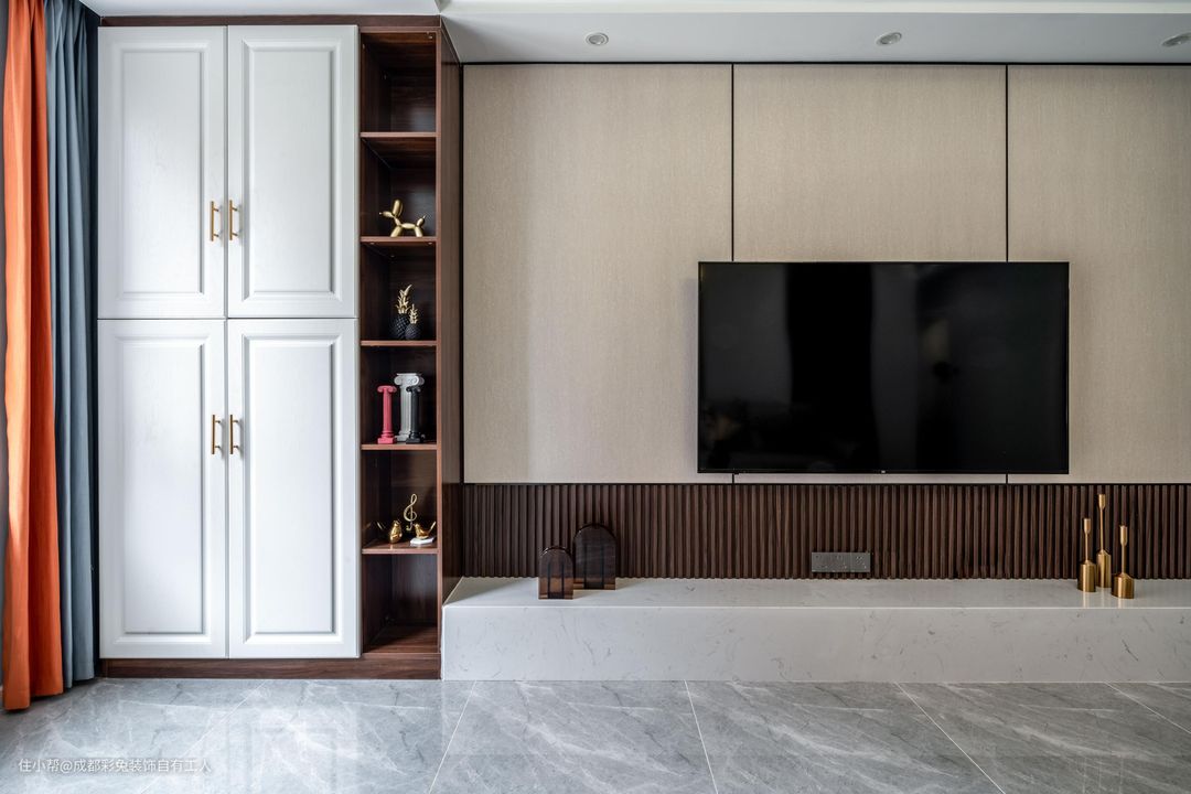 简单的木饰面电视墙+白色与原木色结合的收纳柜的组合,采用不同材质的单品,凸显空间的质感;再结合时尚的装饰品,极大地满足了现代人对时尚与实用性的追求,简约不浮夸,营造高级雅致的空间!