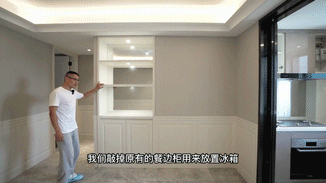 同时打薄墙体,从而加长柜体的进深,将冰箱嵌入其中,与餐边柜融为一体,颜值与实用兼具。