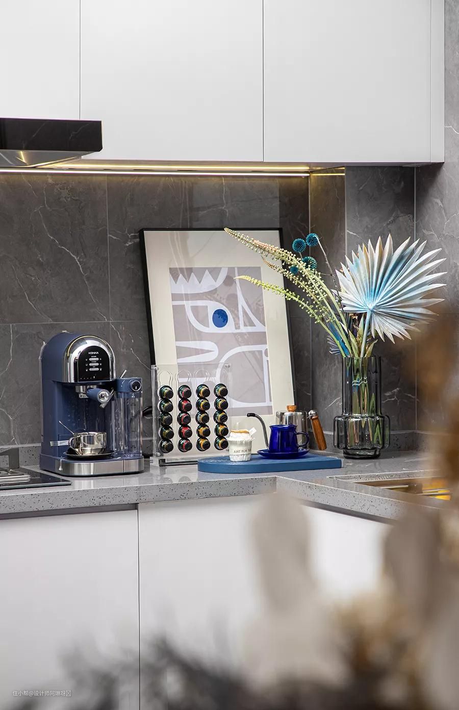 这里是承载一切美好的理想之地,亲情的能量,在具有艺术气息的气场里自由流动,无论是在阳台边绘画,还是在餐厅简单的烹调用餐,只是要家人围坐在一起,就能成为亲情与香味交流的自留地。