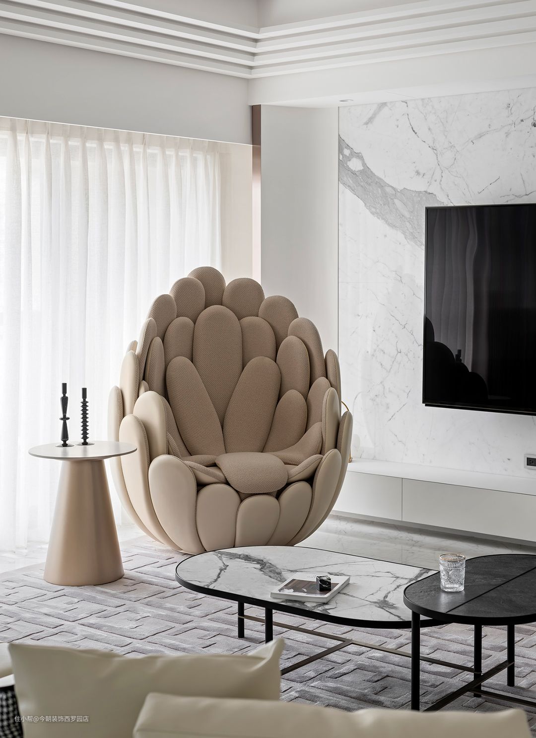 如何定义「微古典」? 「古典」透过对称与雕刻,一展平衡和谐,无论是花卉草本意象,皆讲究细工,烂漫诗意自是从中缓洩,而「微古典」自是取「古典」精髓,以现代手法為实,线条辅以直线、弧线,取代花瓣叶脉有机体,色彩以纯白為主,点缀金属与石材,降低高复杂纹理。「微古典」可说是一场跨越时空文艺復兴,不仅颠覆艺术文本,同时带领我们还原风格与家居的真实脉络。