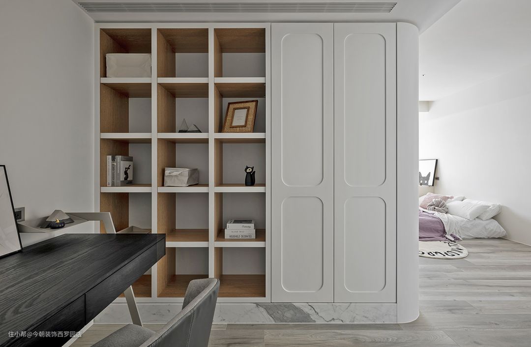 整个空间干净整洁,房间主人性格温顺但很欧自己的想法,属于新时代独立女性,房间大面积留白,因为很爱干净,喜欢纯粹的美。