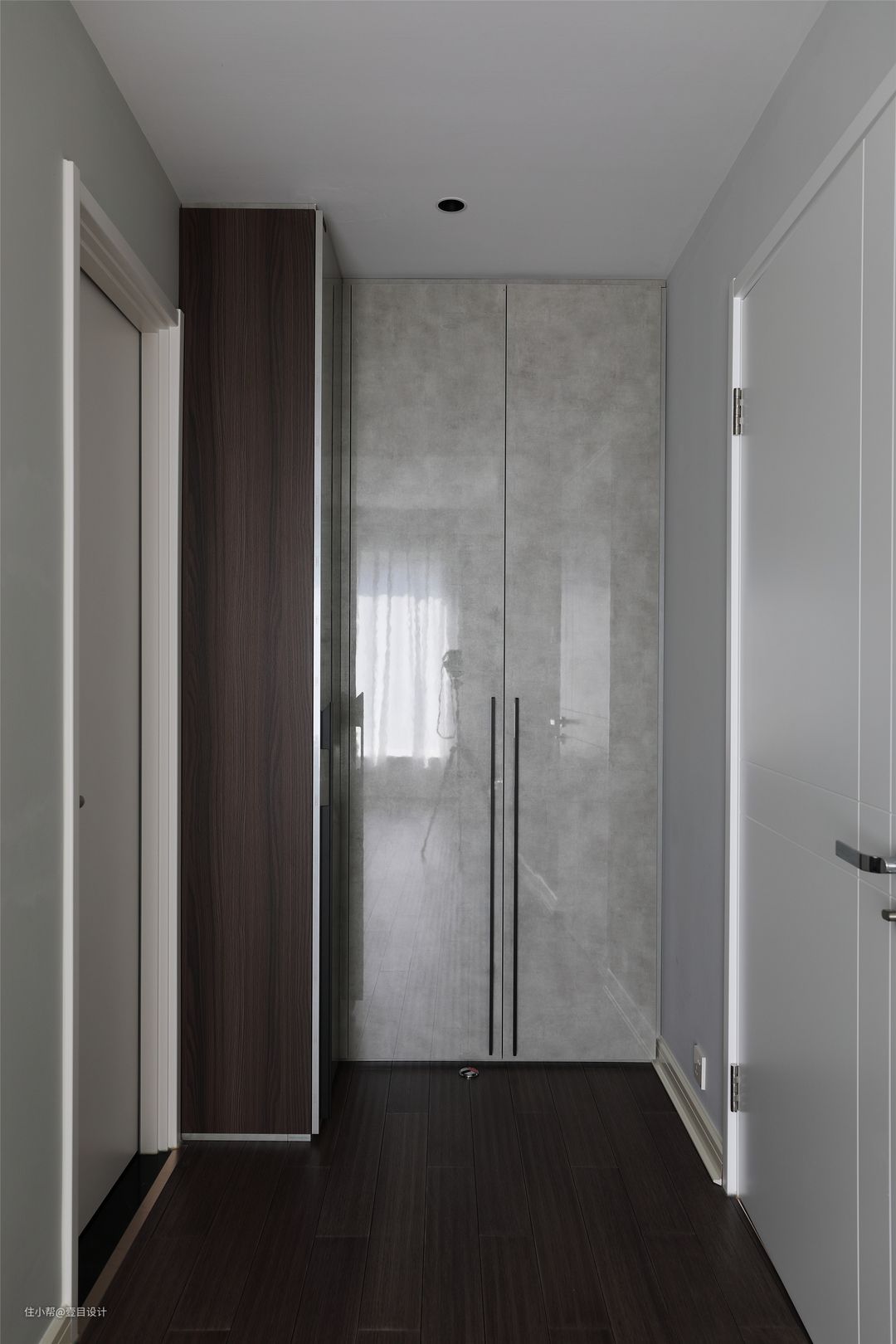 倚靠衣帽间与休憩区隔墙布置高柜,满足日常衣物收纳需求,局部柜门选择玻璃,与镜面柜体板相互成就,自然光线之下,形成梦幻的视觉效果。 玻璃柜门方便拿取衣物,同时也能减轻通体灰色的高柜,给卧室造成的视觉负担。 #主卧 #双人床 #床头背景墙 #床头灯 #衣柜 #高级灰 #木地板 #卫生间 #筒灯 #窗帘 #踢脚线