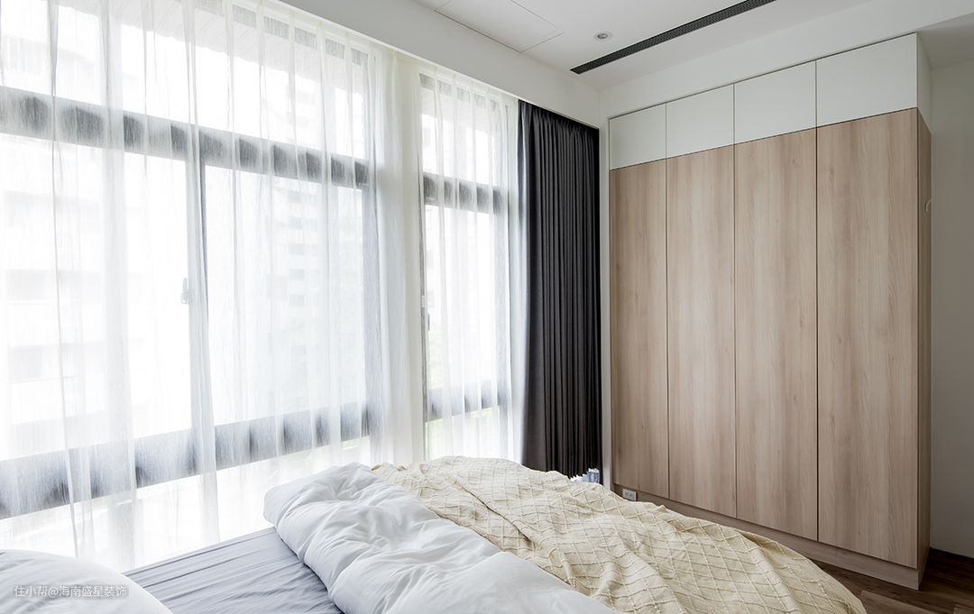 将旅行感实现在每日睡醒瞬间,地板刻意增高为和室卧眠区,为扩增收纳区域,将原床侧衣橱,改设置为床尾一整列量体。