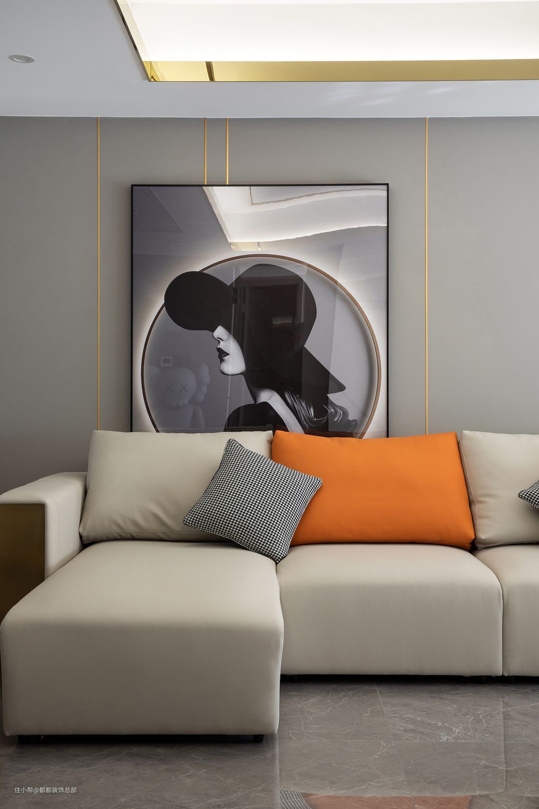 素色皮质沙发带来纯净文艺的视觉感受,入手细腻温润,彰显出现代简约风格的清新与时尚,搭配视觉对比强烈的橘色抱枕,简洁明快,符合人体工程学的懒人沙发摆放方式更为随意,蓝白相间的独特元素设计,使得空间多了些许精巧的灵气。