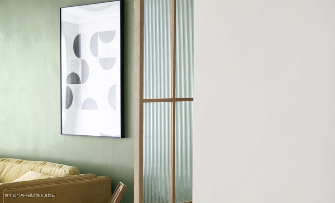 隔断到顶但不靠墙设计,不会太笨拙,又完美挡住了看向卫生间的视线。