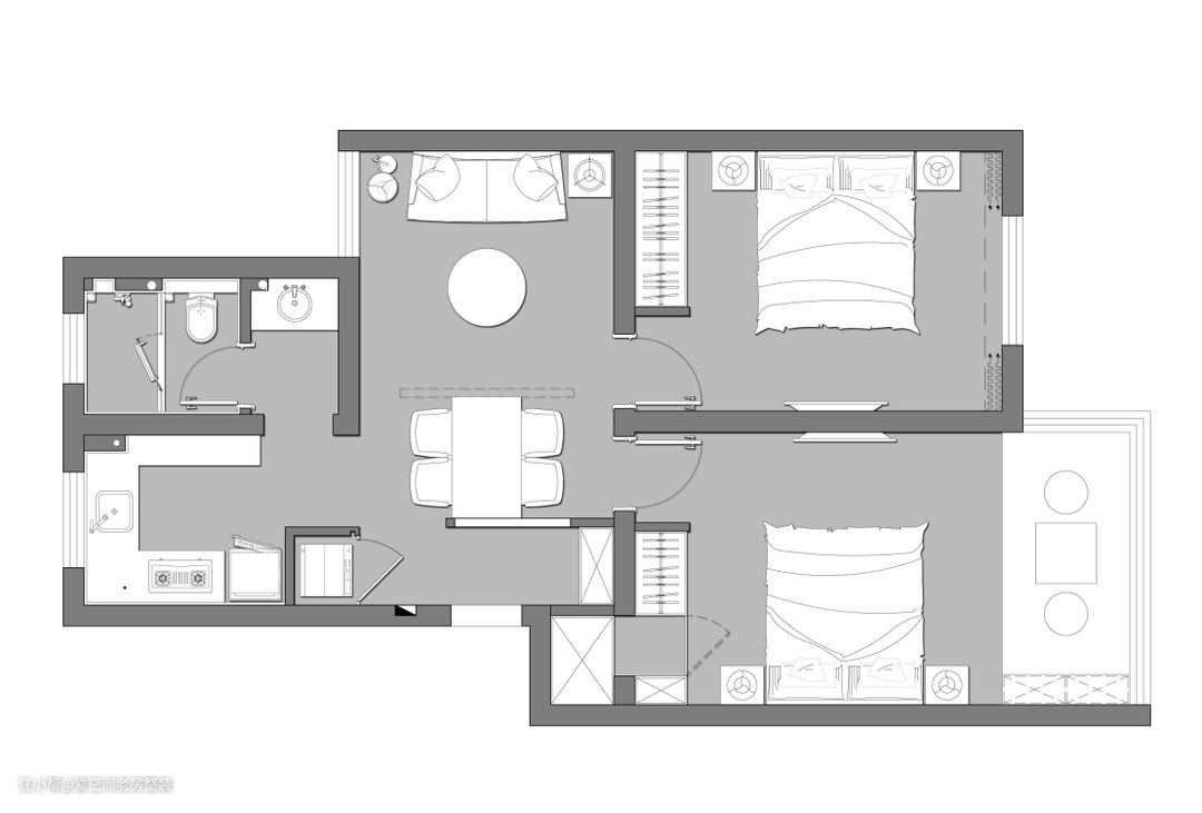 &屋主介绍 屋主家里一家三口居住,平时孩子都在寄宿学校住,在家呆的时间比较短,可以将次卧设置为次卧和休闲室合并设计。 &屋主需求 1.屋主睡眠质量不好,需要有安静的起居环境。 2.卫生间干湿分离。 &房屋信息 面积:86㎡ 风格:北欧风 户型:两室两厅一厨一卫 装修成本:15万 &设计方案