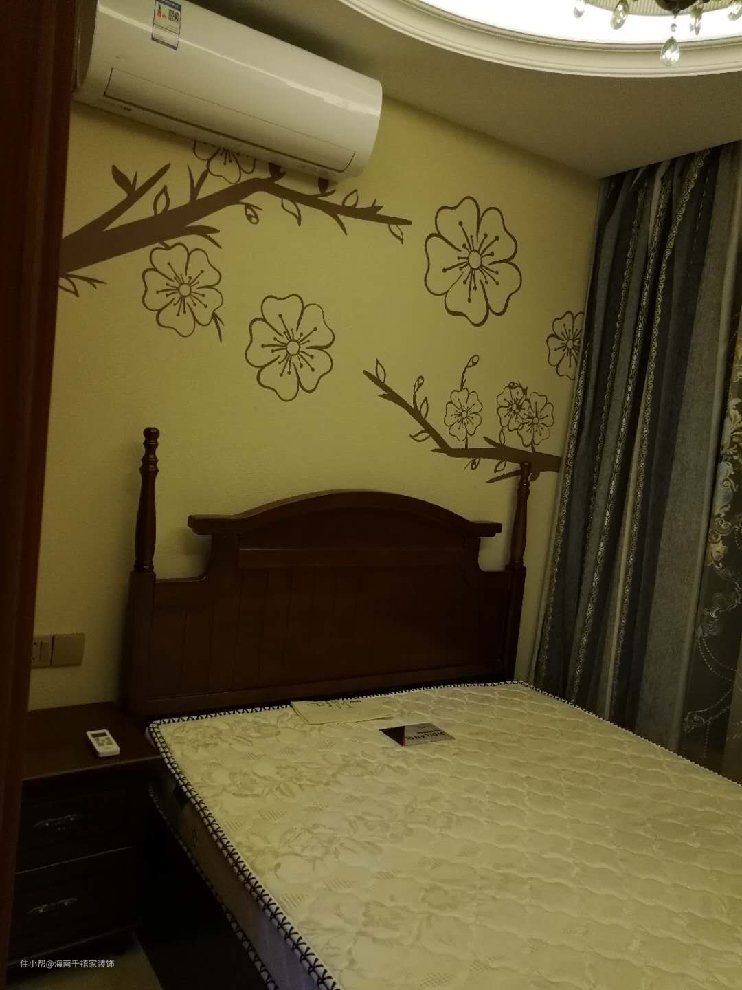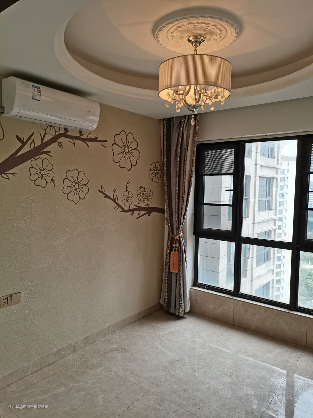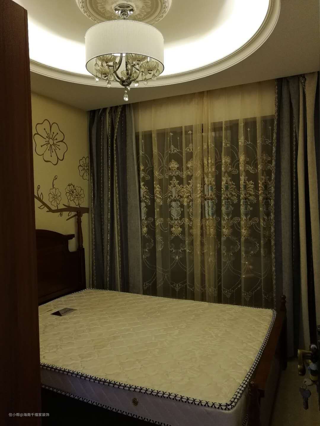 主卧做了一个圆形吊顶,用了石膏底座,吊灯灯光是暖色,晚上开灯起来很温馨。