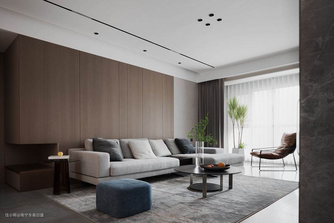 柔软的布艺沙发,搭配上高级灰的地毯,在这里和家人在一起才更舒适,无主灯的设计,夜晚来临温暖的灯光照射下,欢声笑语的画面渐渐浮现....
