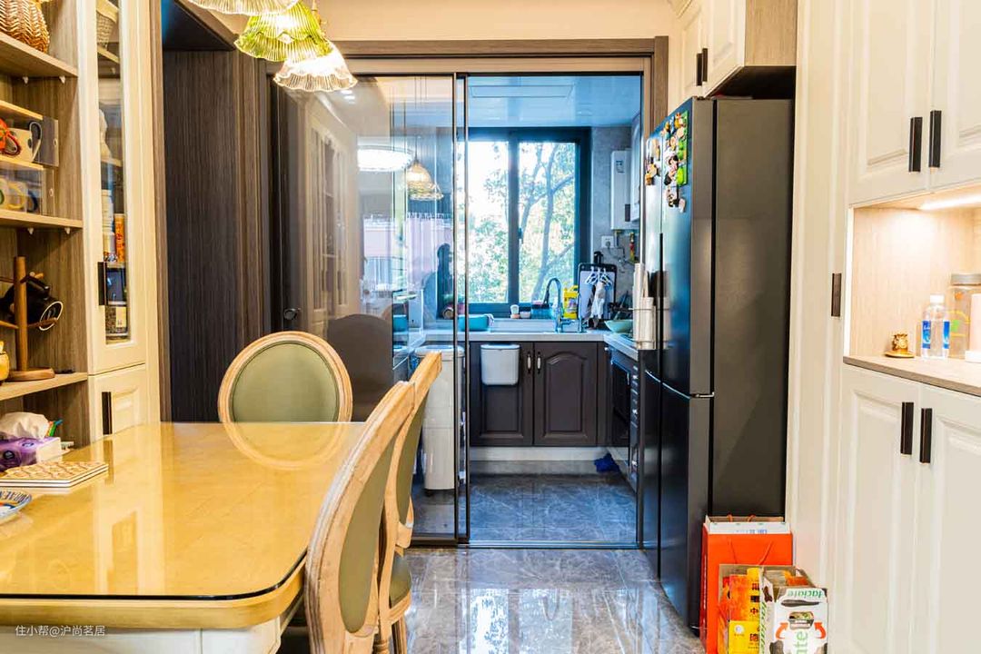 厨房与餐厅相连,玻璃移门既能隔绝油烟,又保持室内通透