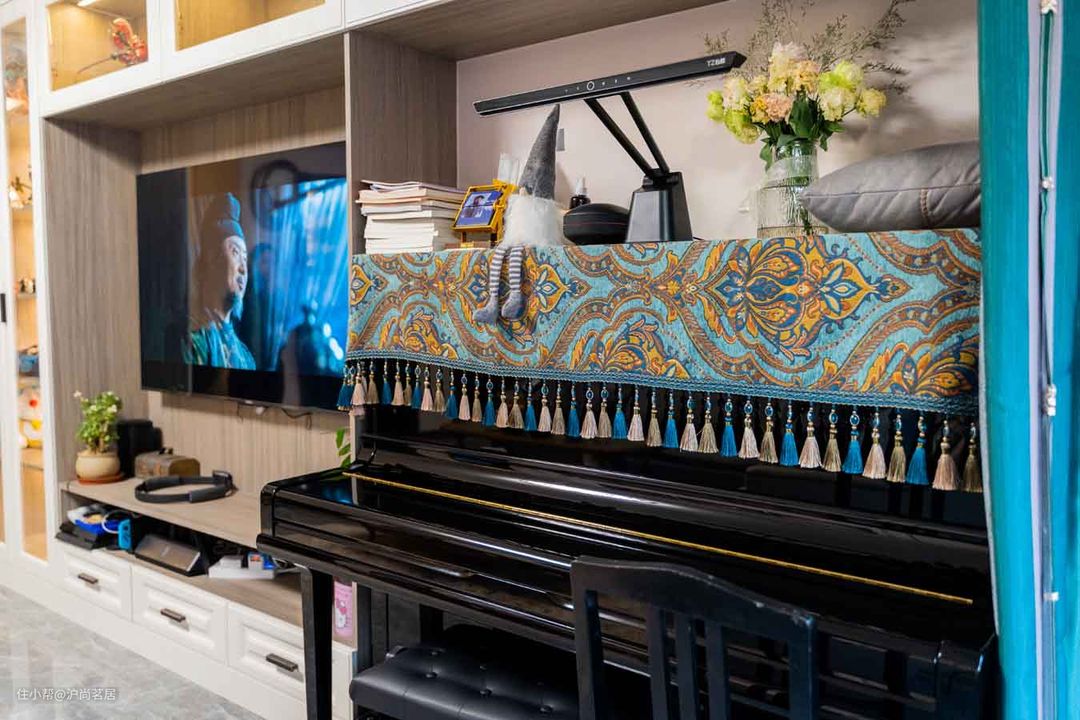 与定制电视柜体并驾齐驱的,是翁女士的私人练琴区,钢琴与定制柜采用齐平设计,空间整体性强,又极具个人特色。