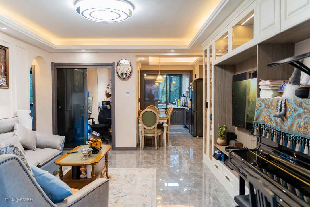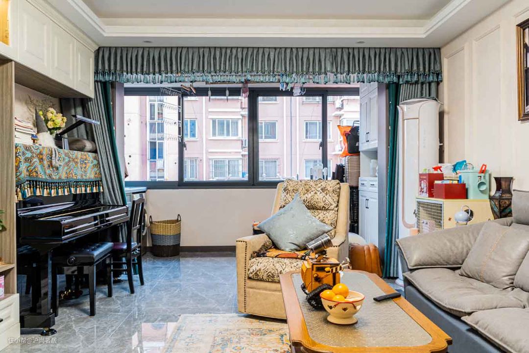 翁女士家总面积不算大,却有着浓浓的温馨舒适感,典型标志的美式单人沙发,搭佐复古金边挂画,再拉上浅色窗纱,氛围感拿捏了!