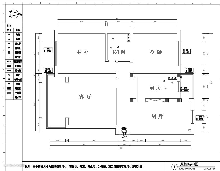 这是原始的空间布局,全屋98平米,是常见的两室一厅经典布局。入户即是过道与墙面,不仅影响采光,空间也显得拥挤。 业主装修需求: 1.在风格方面:业主对于风格非常明确,看了很多装修风格,想要装修成复古的小美式。 2.在空间方面:男主人想要有自己的独立办公区,女主人需要自己的练琴区。 3.灯光与软装需求:男女主人的工作均与艺术相关,因此对家的整体感觉也十分讲究,灯光与软装方面最好也是复古美式的,增加氛围感。 4.其他需求:主卧想做成套间形式,最好有自己的衣帽间与小卫生间。