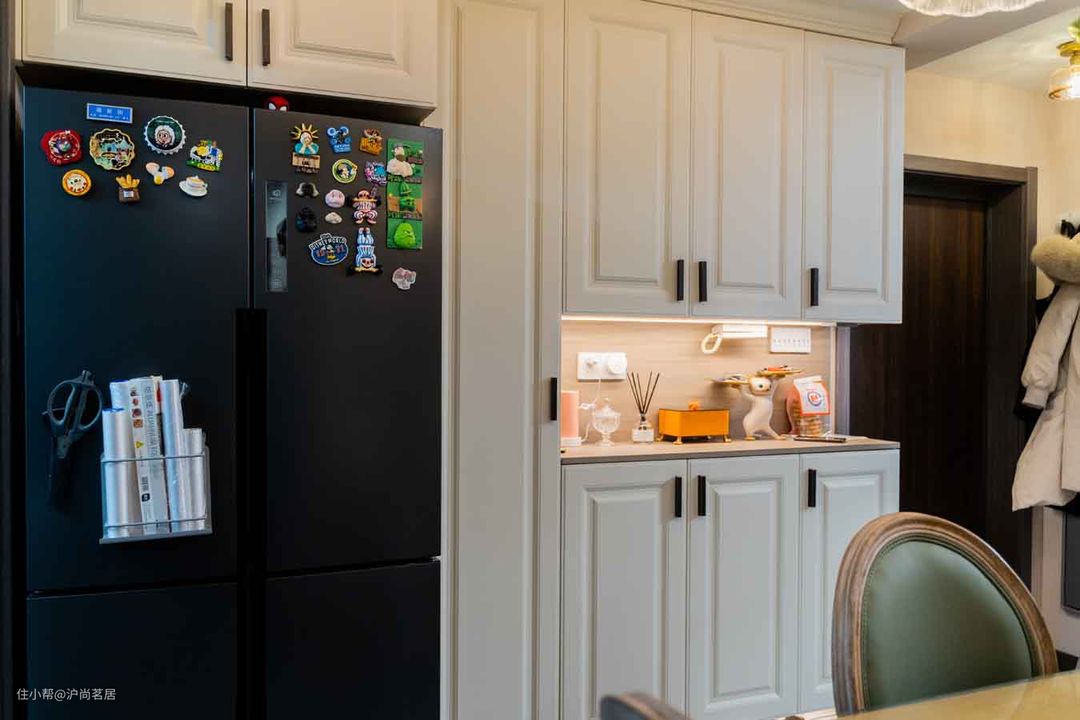 定制柜预留出冰箱区域,嵌入式处理保持空间统一。