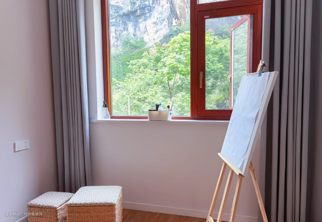 本来是侧卧,因为现在暂时没有这个需求,所以闲置了出来成为业主平常写写画画的地方。