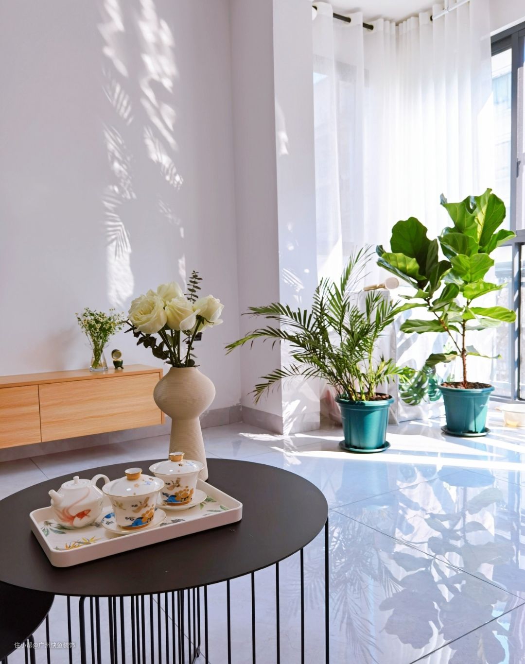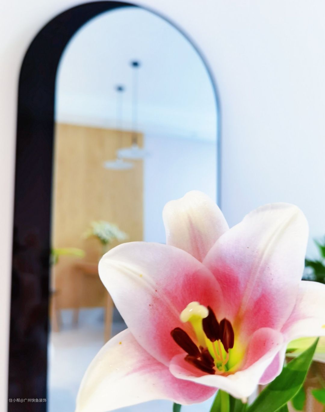 拱门落地镜也放在客厅,方便随时照镜子,被照料的很好灿烂盛开的鲜花。