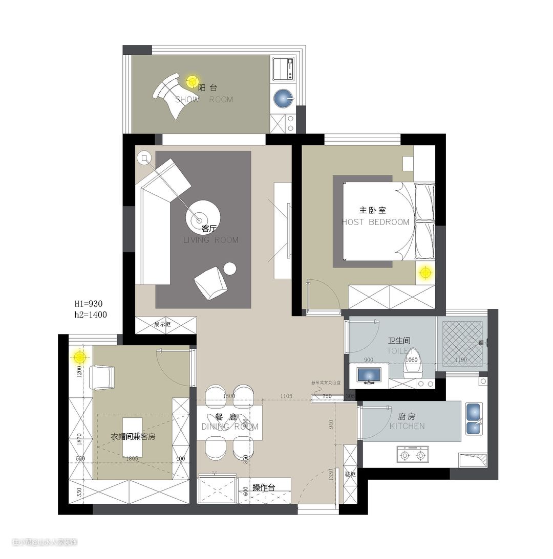 设计故事: 本案业主是一位年轻漂亮的都市丽人,独身一人打拼在外,终于收获了属于自己的房子。本着清丽淡雅的个人风格,房子预设的是简约风,效果图呈现出来,颜值真的靓爆。但设计师还不满足,建议说:“要不加点轻奢元素?”这席话犹如打开了潘多拉魔盒,业主欣然应允。加入各种金色元素后,整间房气质大幅增强。业主连连说:“这种轻奢简约主义,真的太适合我这种喜欢捯饬乱拍的年轻人了。” 户型解析: 整体户型方正,南北通透。设计师并未做过多的调整,讲究的就是一个顺其自然。主要是将各处多余的墙体打通,使其形成全开放式的生活空间,以此满足业主多样化的生活需求。