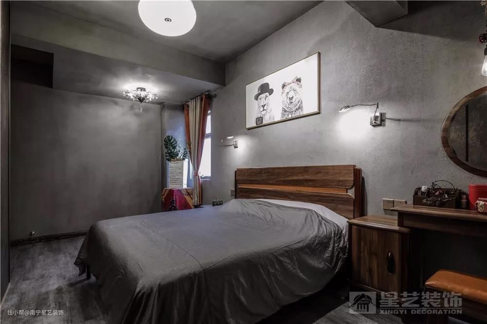 卧室延续客厅黑灰的色调 但比客厅少设计了很多装饰 除了必要的物件外 基本没有多余的装饰 满满的冷酷和静谧之意 更助业主享受高质量睡眠