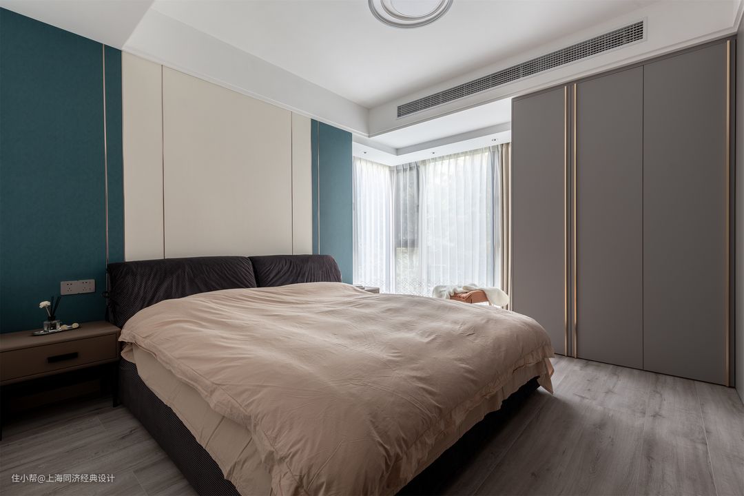 主卧呈现了设计的寂静之力,用克莱因蓝延伸出一片静谧的海,卷起我们脑海中的复杂与烦扰,飘向甜美的梦境,生活便吟咏着无限的诗意与悠然的格调,向我们走来。