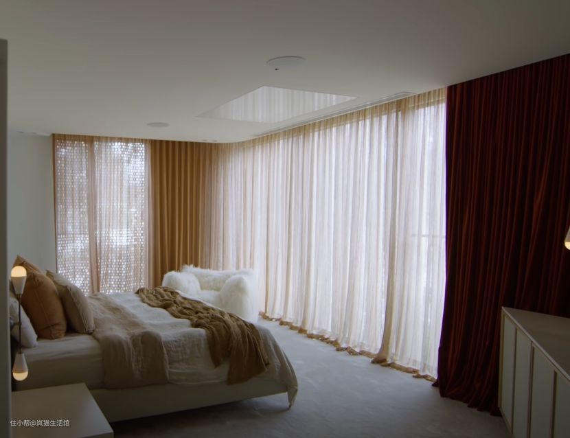 卧室做的大面积采光,落地窗的设计,保证了室内的采光,视觉感也更好,暖黄色的窗帘让空间更加温馨一些。