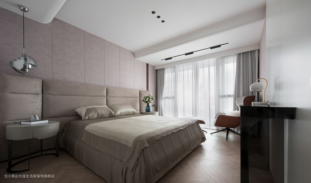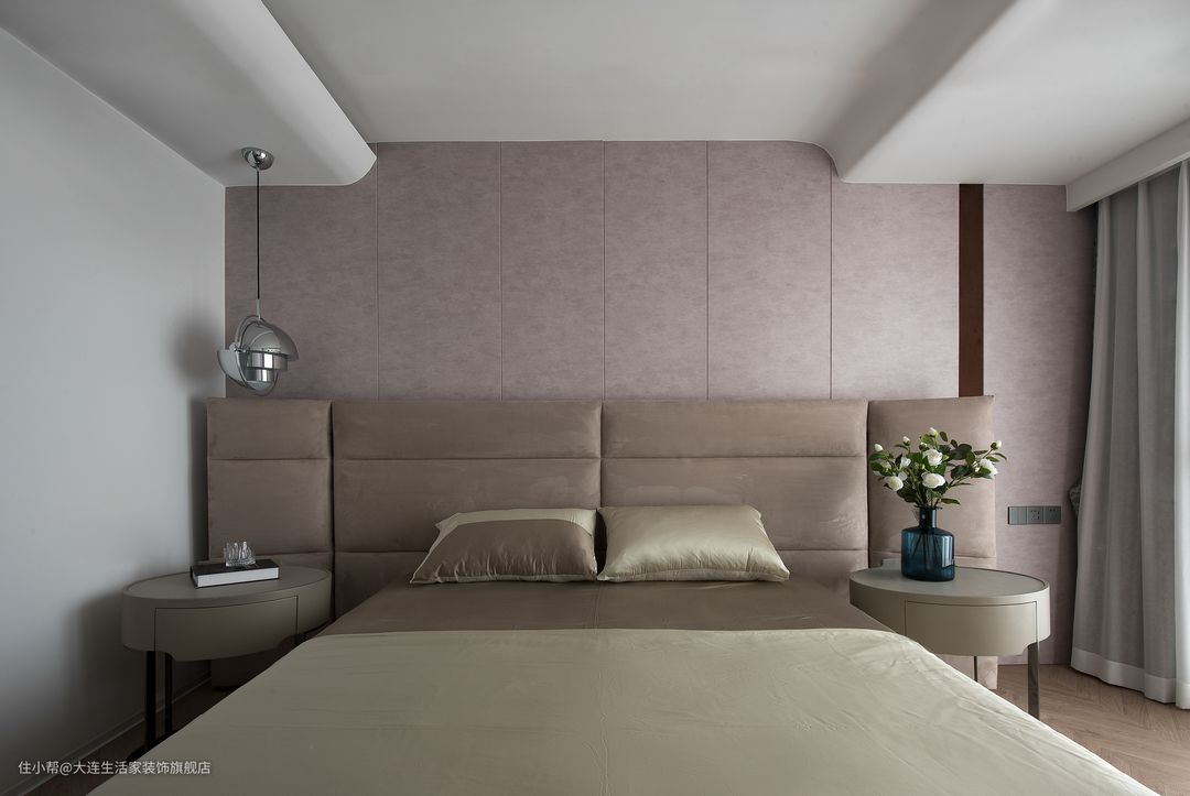 主卧大面积使用莫兰迪色调,更加温柔软糯,熨平生活带来的所有波澜,只留下对生活和未来的热爱。