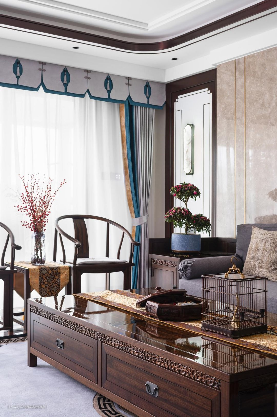 客厅中随处可见的满是包含意境中式风格的饰品和摆件,搭配复古雅致的红樱桃原木桌椅,将空间点缀得高级又精致。