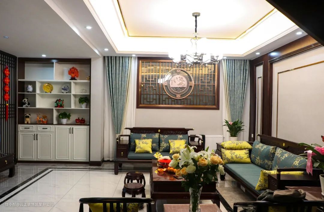 云上装饰·实拍案例 #弗莱明戈 ·新中式风格# 作为事业有成的中产阶级,业主夫妇对生活品质的追求较高。 在与设计师的沟通过程中,他们明确表达了自己对新中式的理解和追求,并拒绝跟风,拒绝中式元素的堆砌,想要一个既简约又颇具中式韵味的生活居所。