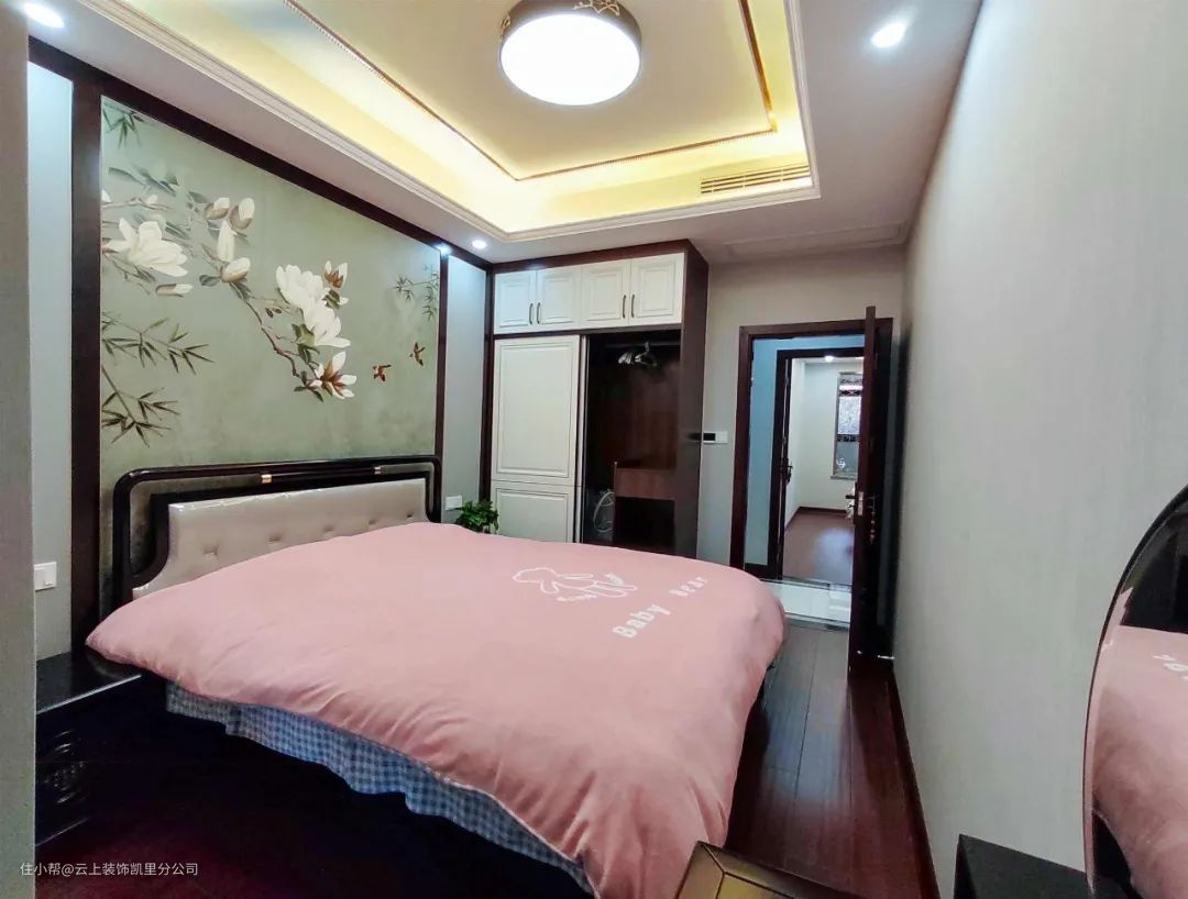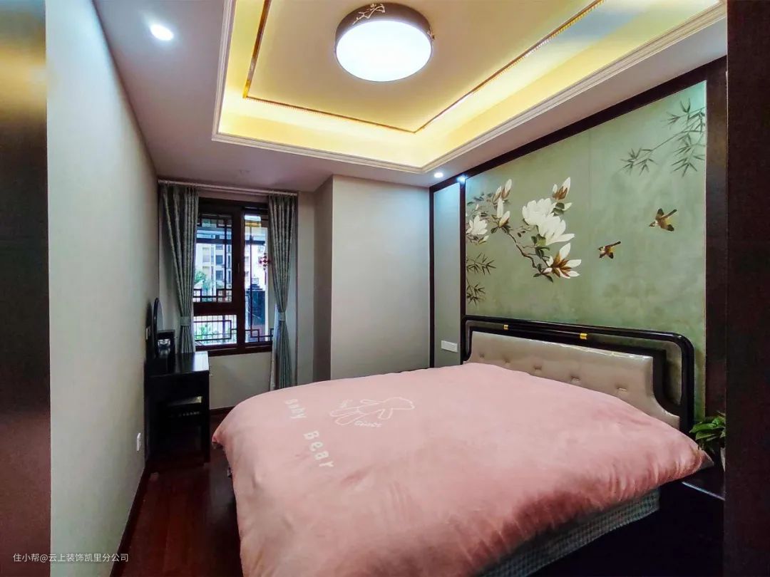 ▲ 次卧的布置给人一种温柔的淡雅感,很好地营造了舒适静谧的睡眠环境。