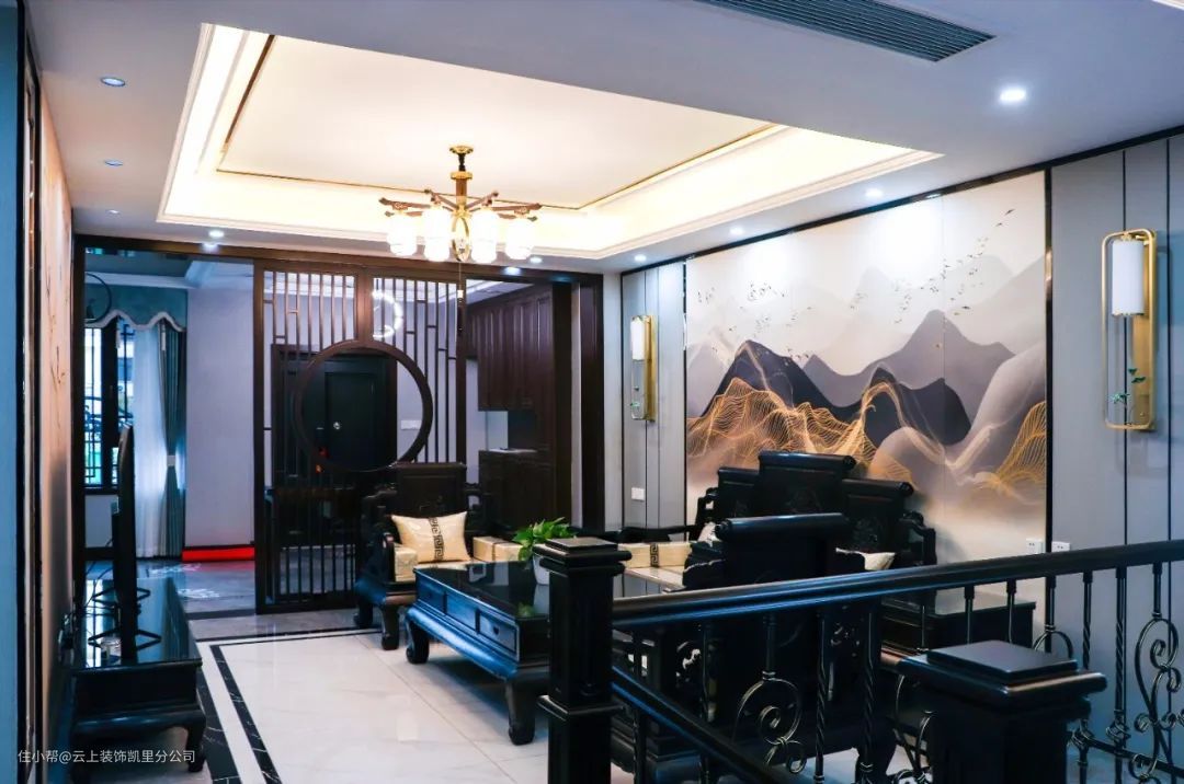 ▲ 对于新中式大宅来说,表达意蕴、传达情怀固然重要,但精致惬意的生活感受才是家的归属感所在。 设计师用现代的设计语言表达东方意境,整体空间调性平和而细节丰富。