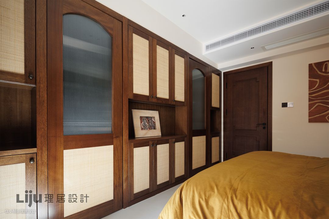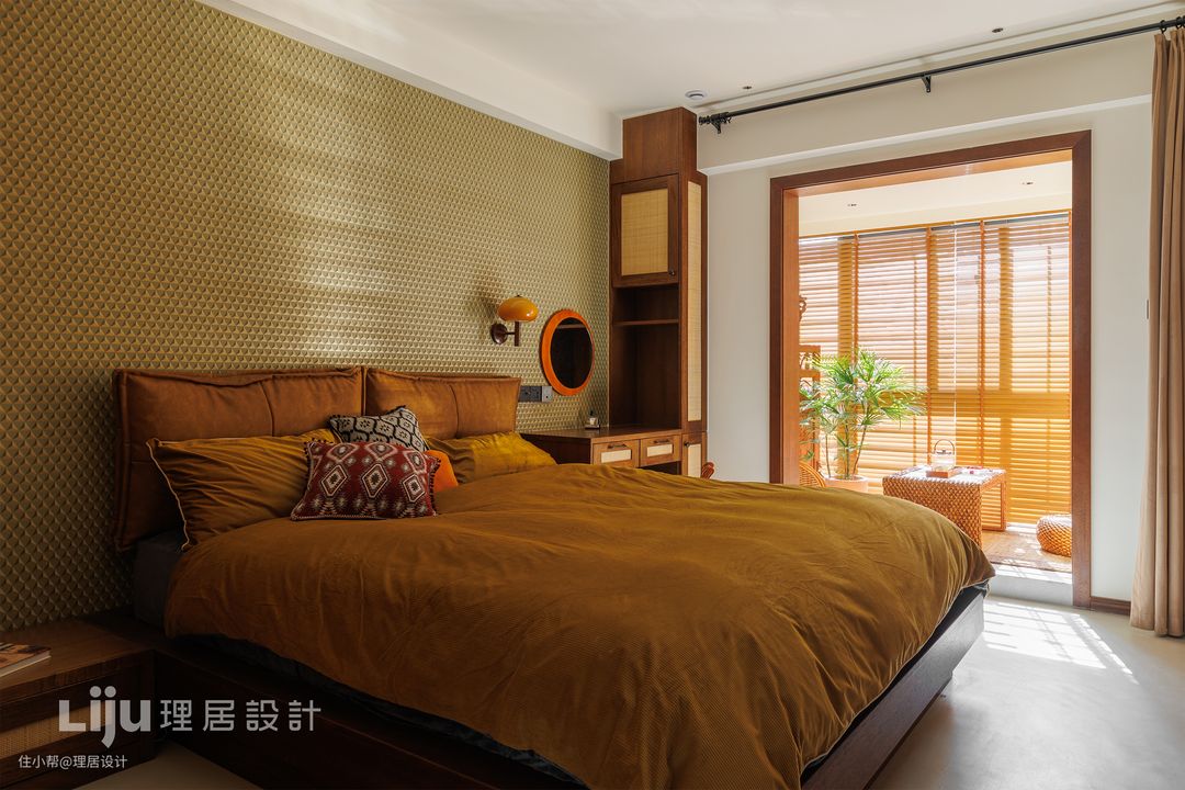 南国的热情在主卧得到了更加极致的体现。在绿色与胡桃木基调上,设计师为主卧增加了更多的藤编元素。