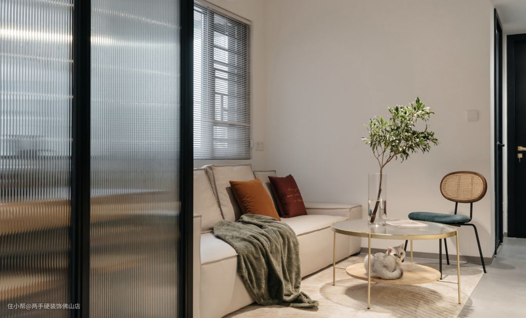 客厅选择的是百叶帘,透光而且隐私性好,装饰性也墙。
