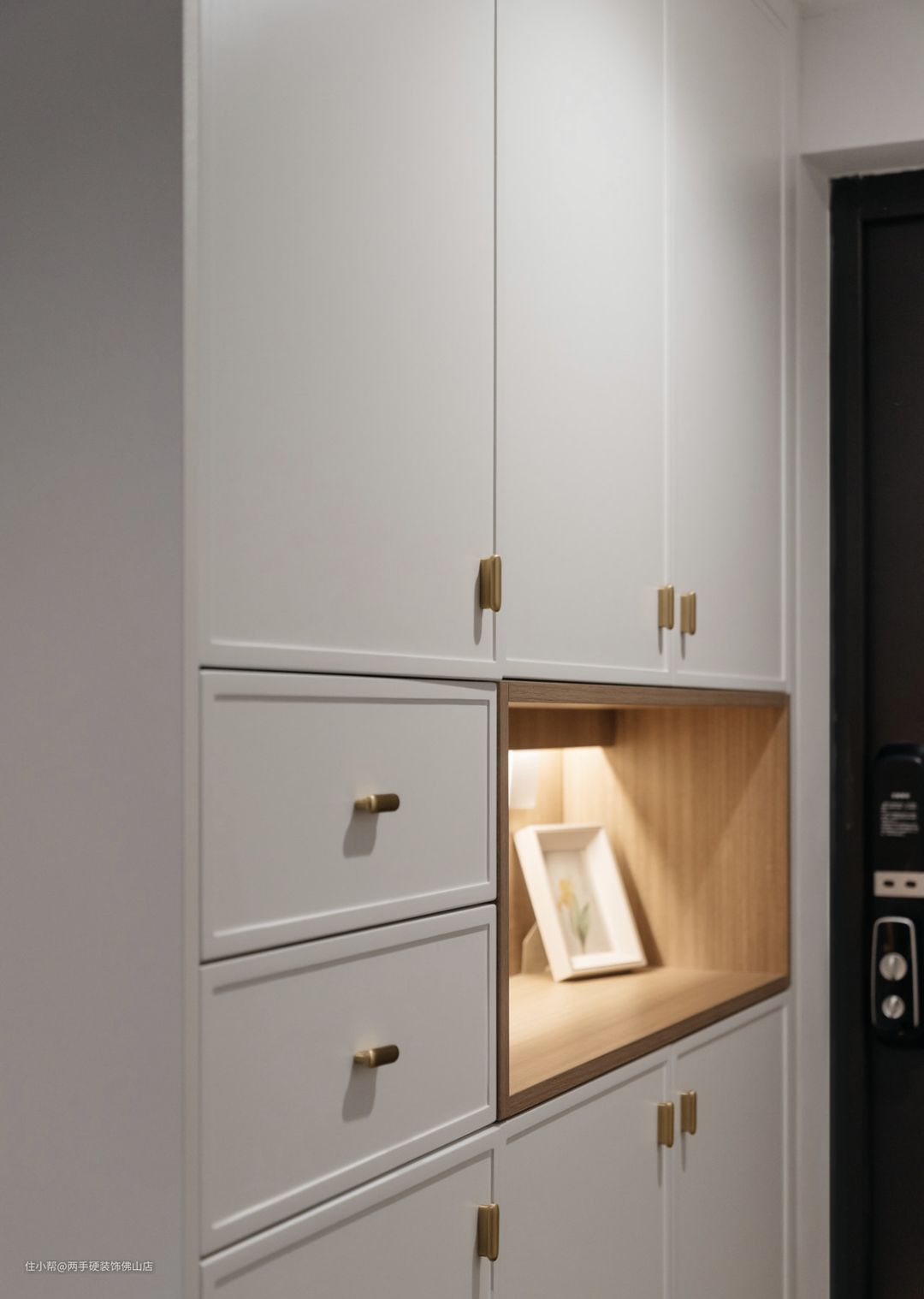 鞋柜局部做开放格,藏露结合的设计,满足进门后的各种收纳需求。