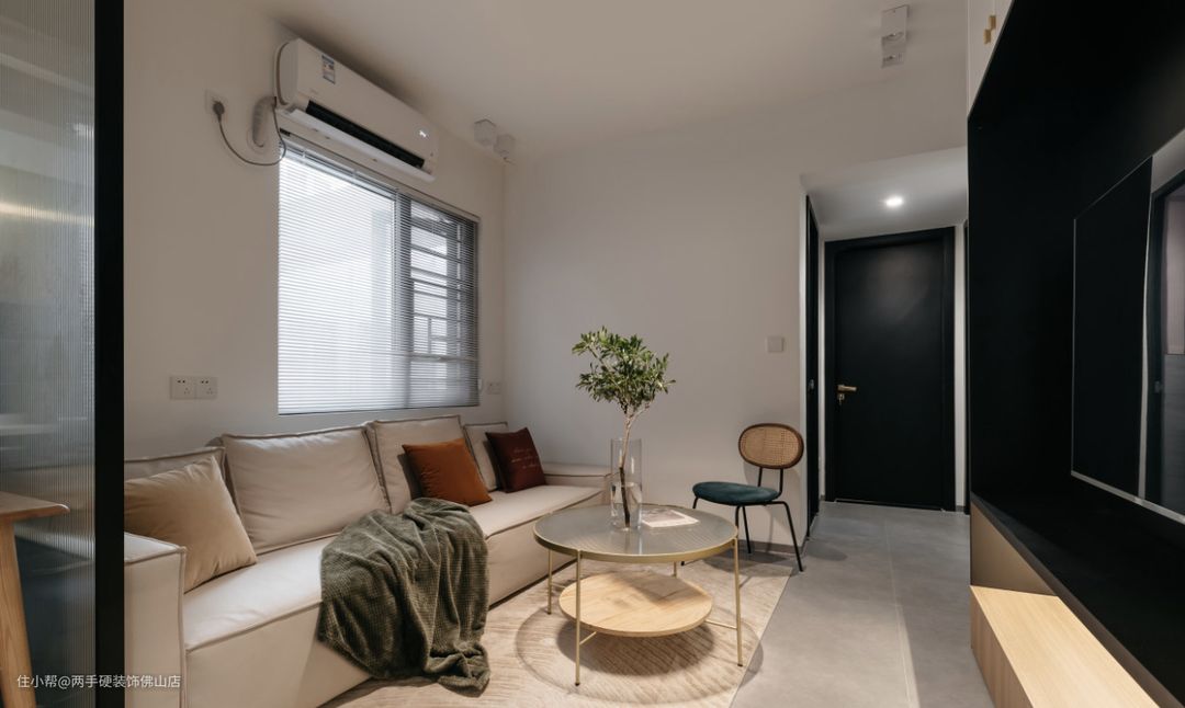 #客厅设计 由于客厅只有一扇窗户进行采光,所以在整体的客厅色调上以大面积的白色墙面和储物柜以及浅色沙发来增加客厅的采光,使整个空间显得更为宽敞明亮。