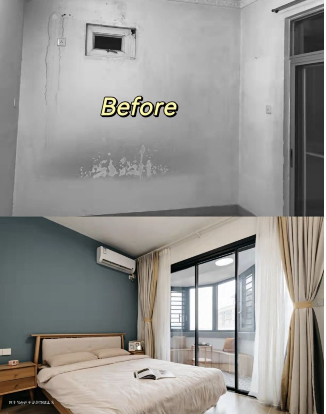 阳台窗户位置看向主卧床头,随手一拍也是大片既视感。