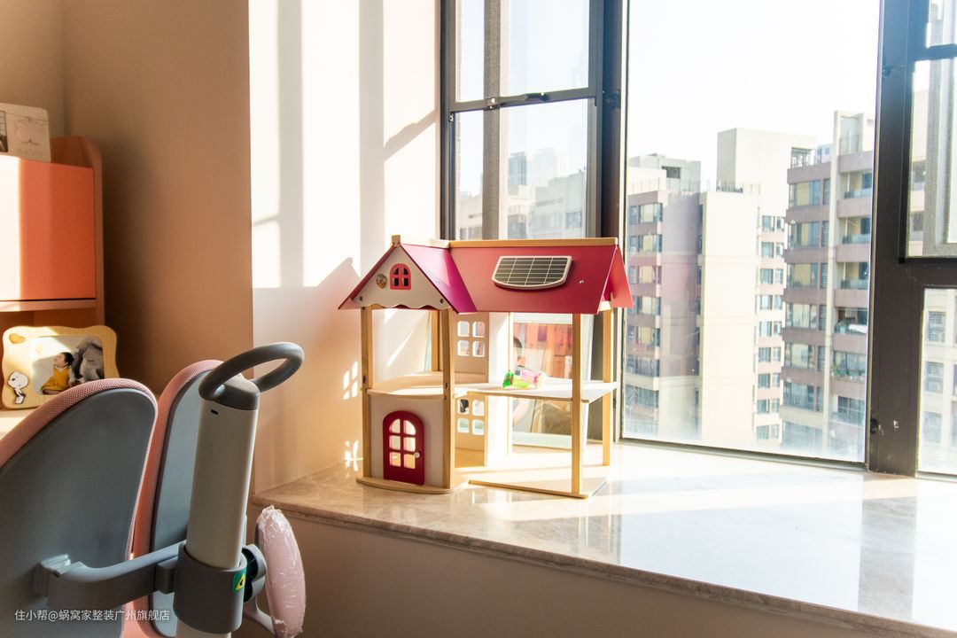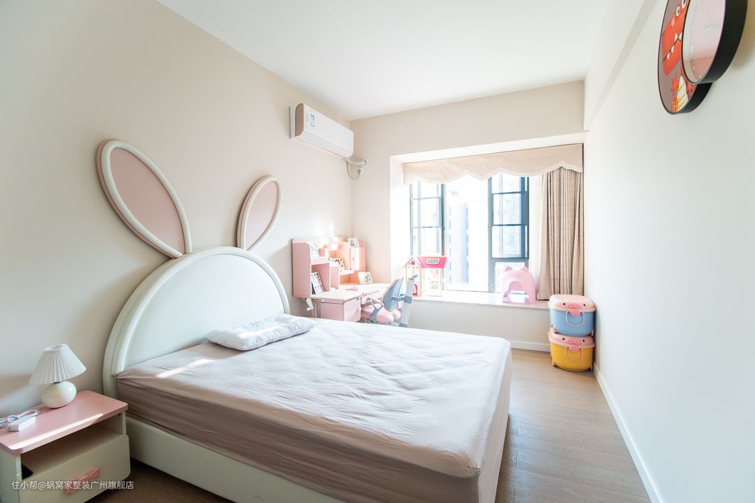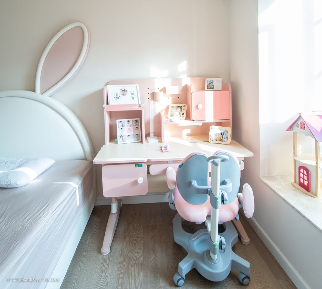虽说小朋友的世界都是五彩斑斓,天真烂漫的更何况是个9岁的小女生呢?!为了整体房屋设计不被打乱,出于健康的角度思考(颜色越“厚重”采用的原材料化学也就越多)房间设计风格还是以简约为主,色彩也是采用了粉+灰。营造一个温馨而舒适的环境给小朋友,给她快乐的童年。