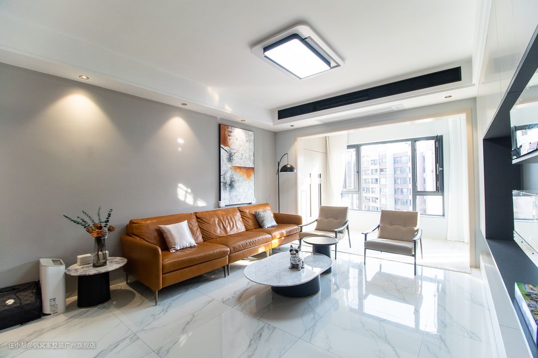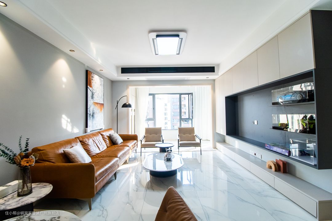 整体空间显得轻奢文艺实用,灯关的照射下质感十足。让回家的人就有一种释怀感。 客厅的设计,电视柜采用的是一体化设计,让空间正宽敞而大气、搭配轮廓的氛围等,多了一份小资的温馨和格调。