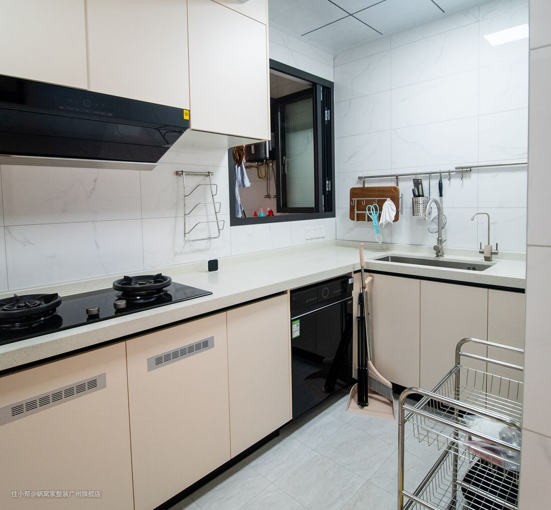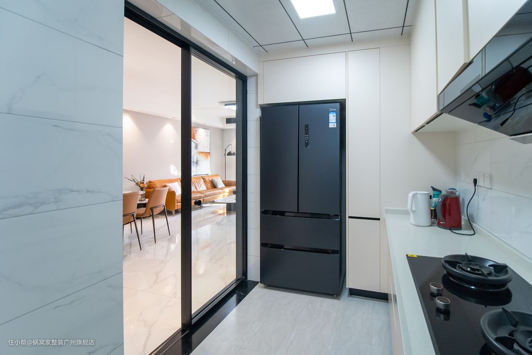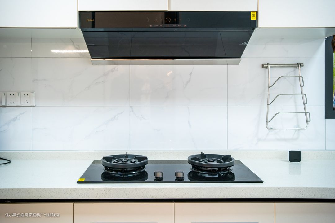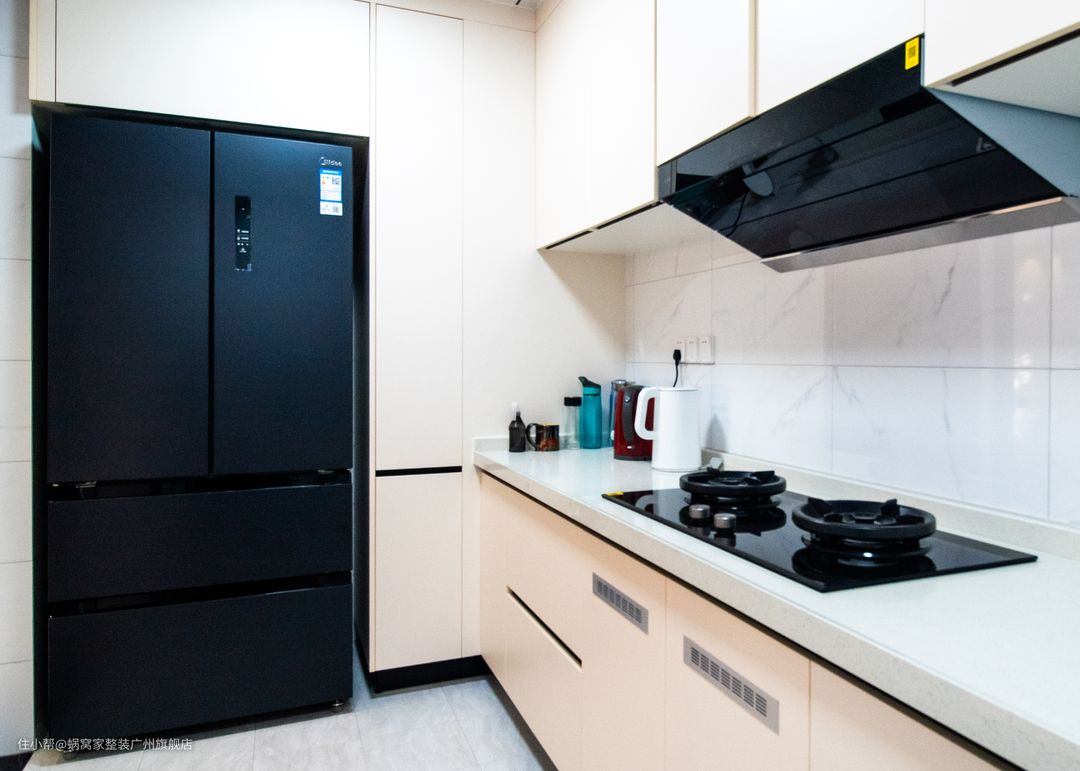 简约是生活的态度,简单是厨房的选择,以乳白和暖白色为主色用黑色线条勾勒出空间立体感,搭配可变色温的灯光,想让厨房不整洁也不行,简约经典的油烟机镶嵌在纯白的吊柜上,赋予厨房空间设计更多灵感与想象。美好的一天从厨房的美味开始,也从厨房的秀色可餐结束。