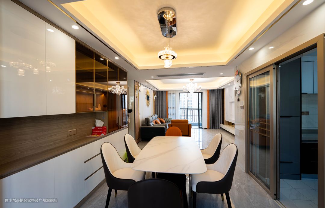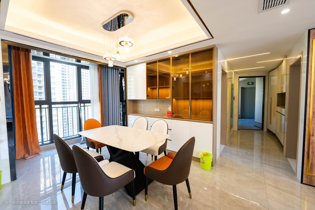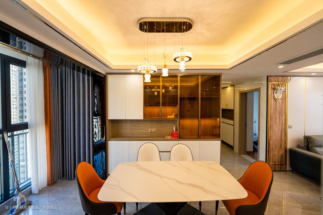 简约而不简单,餐厅的细节充满艺术这些都是设计师在空间里想要尽力去打造的,为的只是让回家那颗心更加舒适自然。无色系中加上一点暖色(橙色)这些不起眼的色调,无形之中成为最亮眼那个了,也算无色系独有的效果吧。
