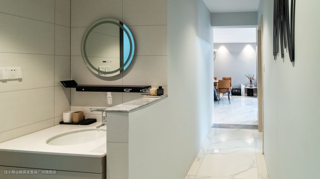 现如今的“现代”轻奢中,色彩绝大多都是选择无色系+暖色调的搭配。高级感的无色系,简约、大气、令空间质感更饱满。通过灯光、材质的搭配,不着痕迹透漏出屋主对生活的追求。卫生间更是最受年轻人们关注的空间之一,一眼看去心情舒畅,就什么都通畅了!