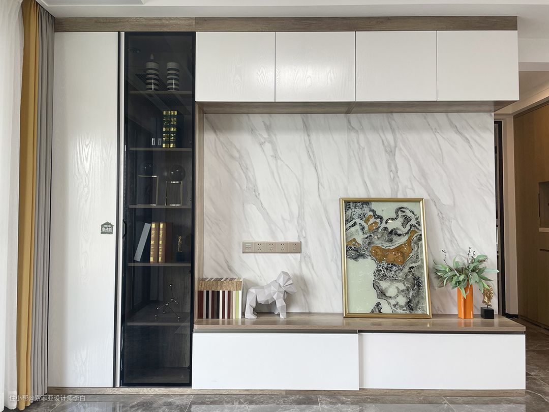 电视柜特意添加银雪石背板,增添时尚格调。