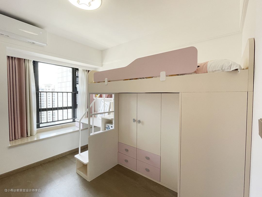满足女儿的喜好,屋主选了一款多功能上下床。