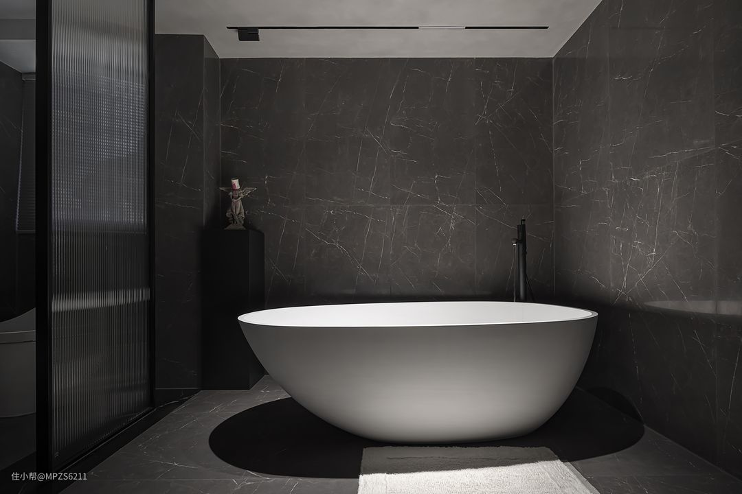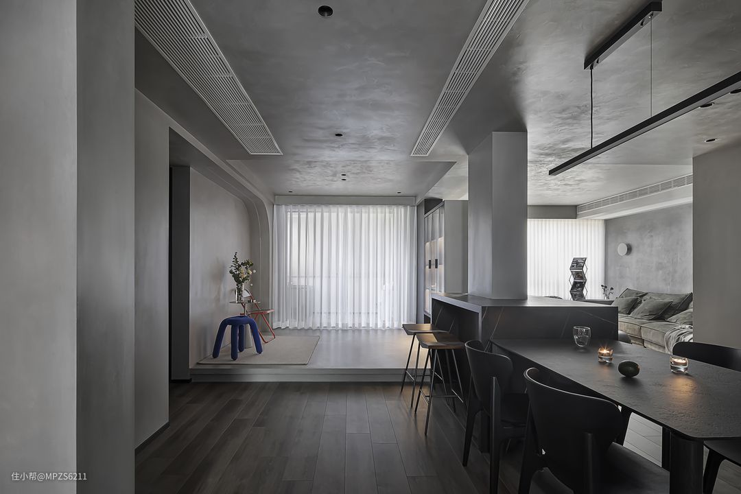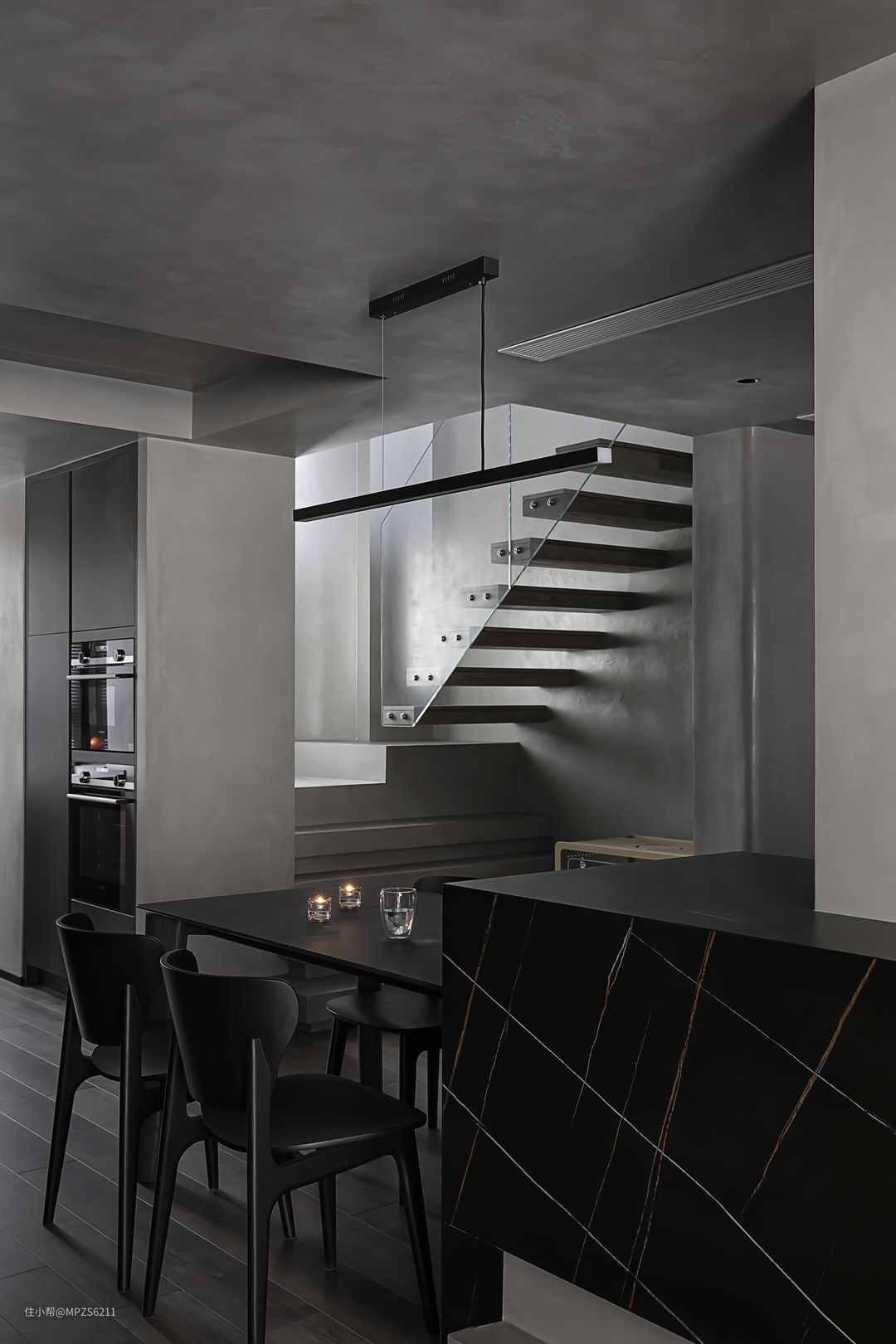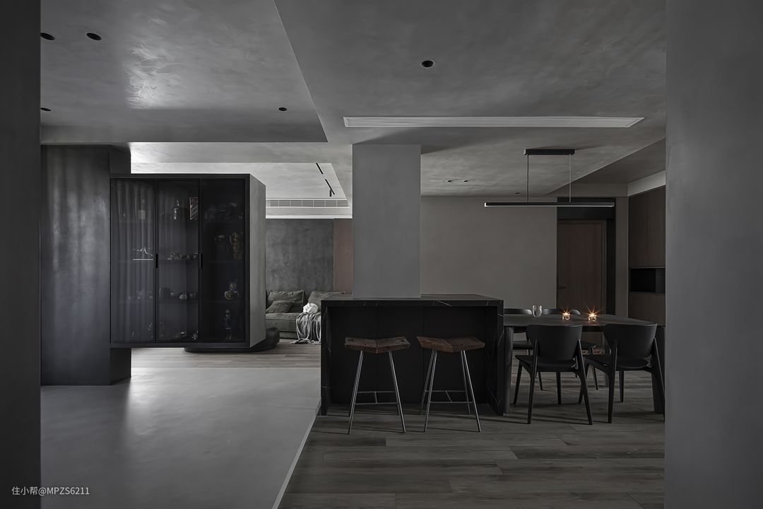 深灰调的大理石墙砖围饰出主空间的范围,无修饰无冗余的强线条感之间,营造极致的工业风之感。