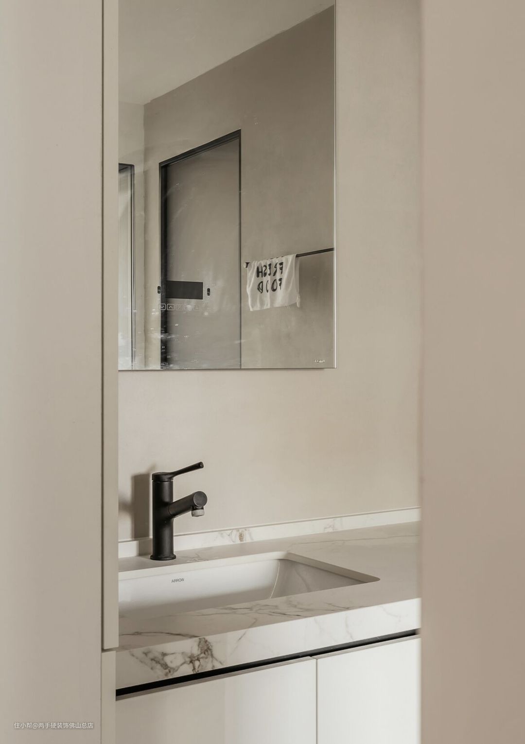洗手池的台面是大理石材质的,上面有一点点自然花纹,虽然是浅色,但是平时打理起来也挺简单的。