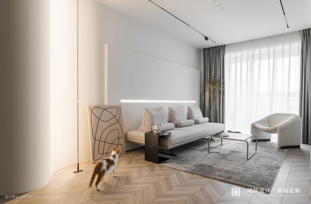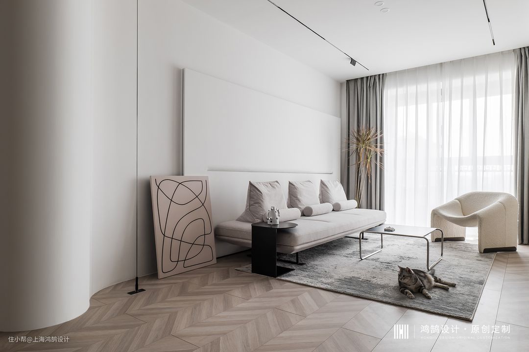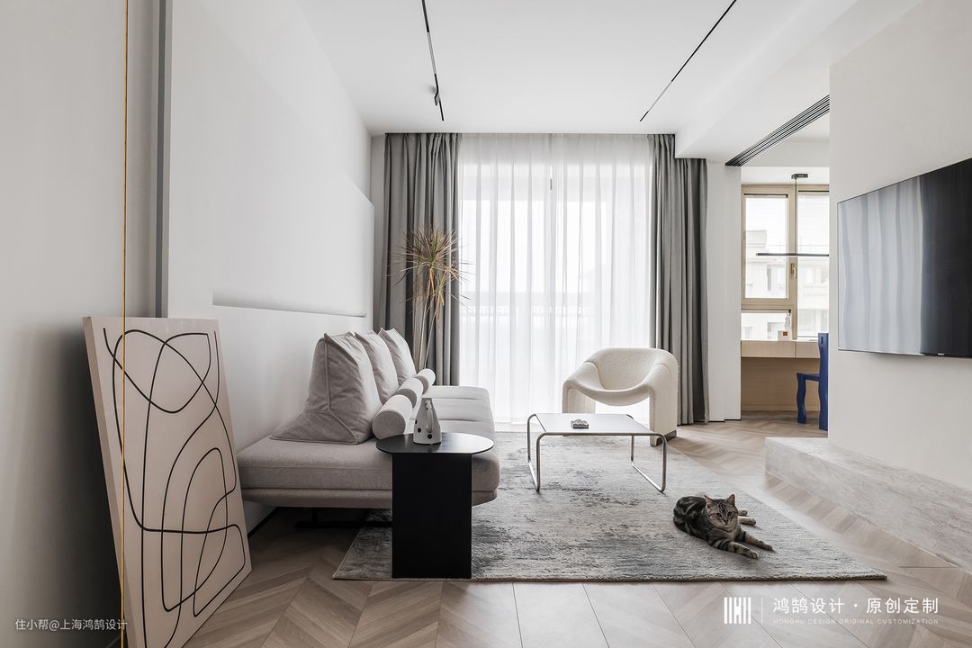 - Project | 上海·央玺《1224》 - Area | 95㎡ - Design firm | HONGHU DESIGN 张从 - Design element | 现代 业主是90后新婚夫妻,家里养了两只猫(蛋蛋和土豆),这套房子是作为他们的婚房使用。业主是一对可爱的人,从大学恋爱开始就经常斗嘴互相拆台,但生活中男业主是一个非常有担当的男人。两人刚到国外生活的时候,全靠男业主操办各种事情,女业主开玩笑说:”没有他我自己都找不到路的。”因为业主夫妻都是年轻人,装修路上有时会有一些分歧,是两人的彼此包容让这段感情更加闪闪发光。 业主拿到房子的时候为精装房状态,开发商设置的现有格局空间被分割,空间阻塞不通透。我们想打开空间,增加采光和通风,制造不同空间功能的互动性。需要满足日常生活和休闲以外,他们希望新家干净,舒适,独特,二人非常喜欢断舍离的居家生活方式。