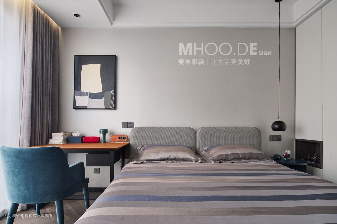 主卧套间的意式家具简致,流畅,给与居住者极致的享受,整体高级灰的配色更多了一份质感。