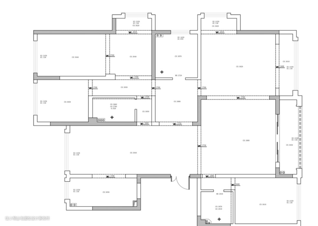 原四房结构改为了五房设计,原来的小孩房没有卫生间,增设了卫生间。主卧采用了双衣帽间设计。