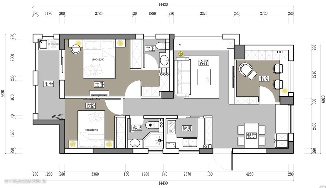 ▲设计亮点▲ ①原两卫户型改造为1.5卫扩大收纳功能,同户型下增加了无限可能的收纳量; ②主卧与次卧共用阳台间,实现空间的整体效果; ③餐厅布局于入室侧,通过大门隔断空间,使得室内的层次感更强,让其达到合理规划动线布局的同时,充分满足功能需求。