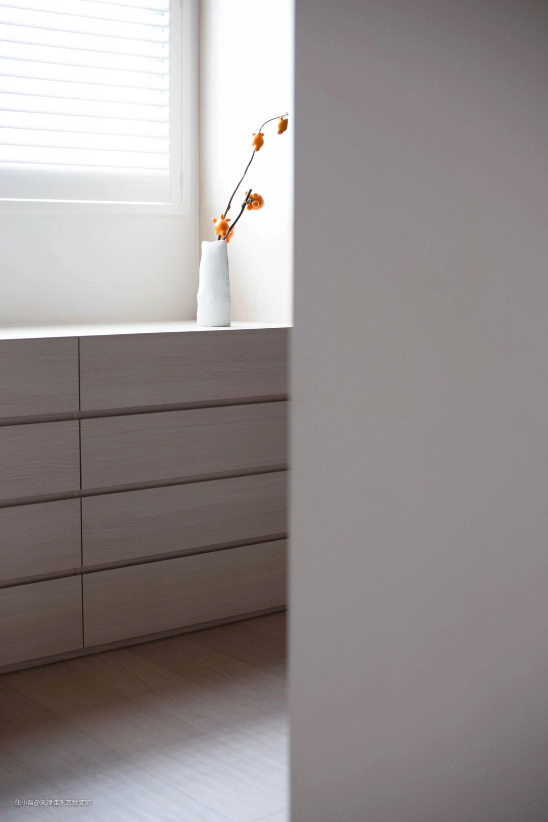书房靠窗的一面部分定制了矮斗柜组合,完全能够满足一些小件衣物的存放。 #衣帽间#斗柜